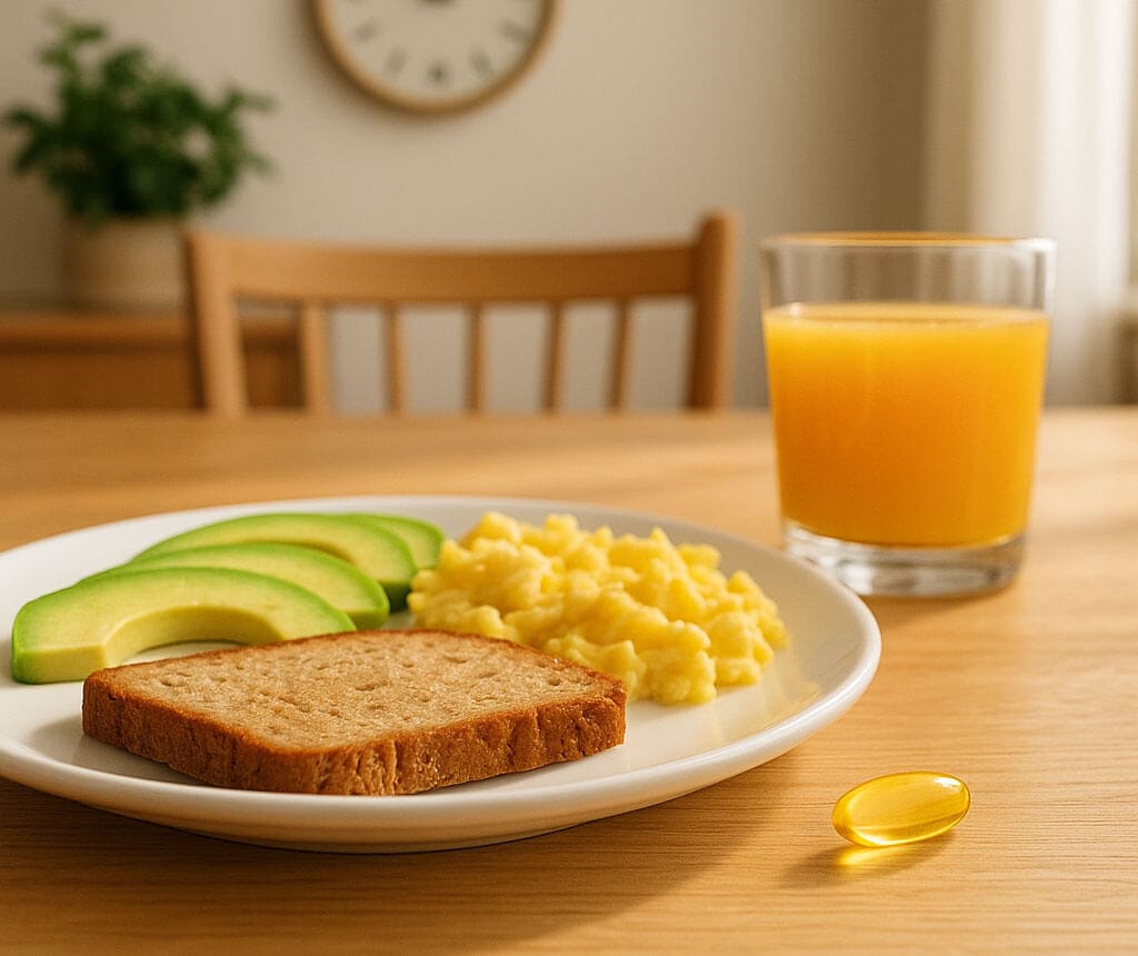 Morning boost: 1 softgel with the first bites of breakfast